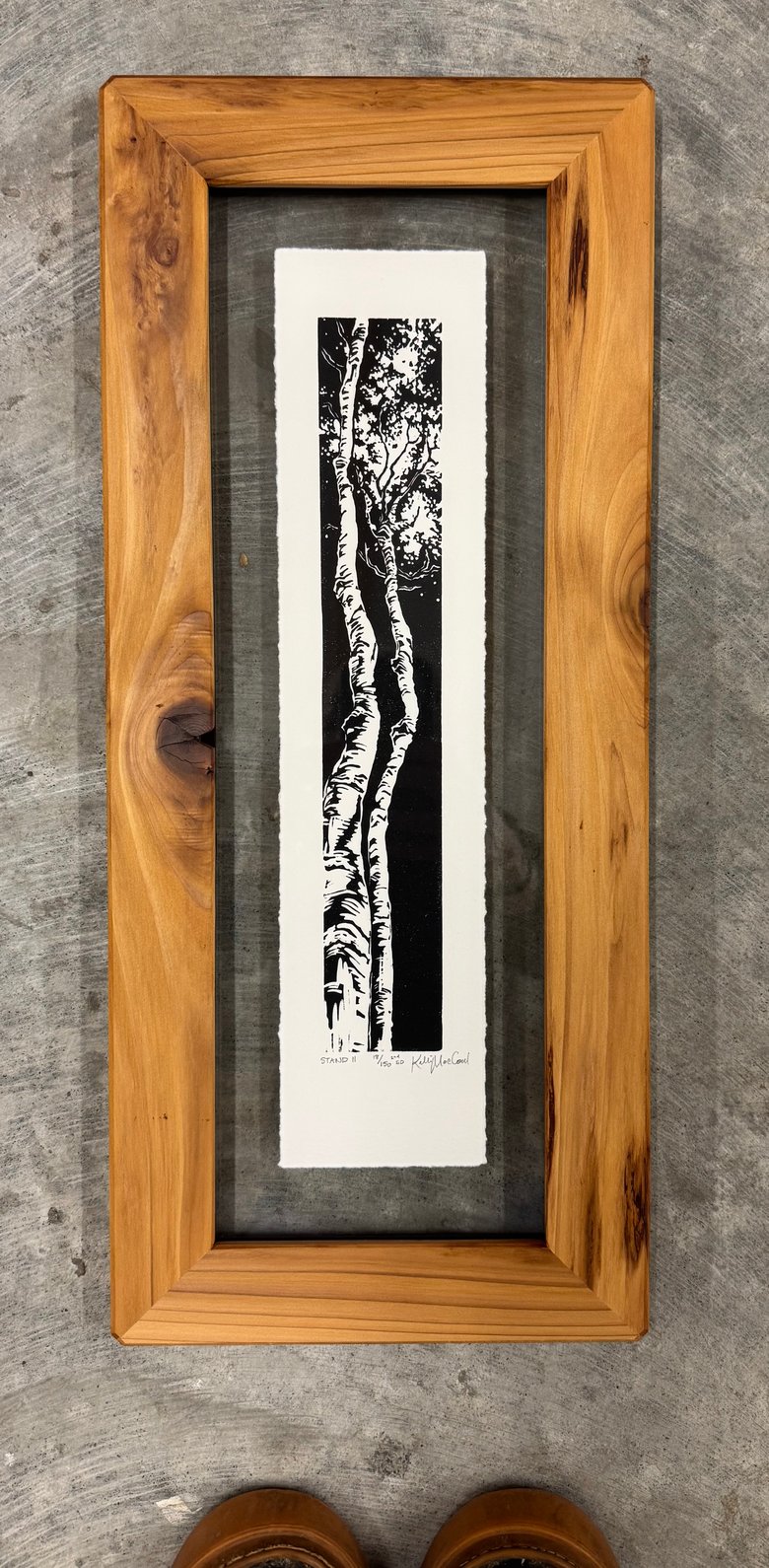 All of the frames are handmade in-house. So much more than a means of preserving your print, these meticulously crafted frames are custom made from start to finish in our modest Portland, Or woodshop. The lumber for these frames is primarily locally sourced salvaged material. Through careful lumber selection, milling, sanding and finishing, we reveal the beauty hidden within the wood. Commonly acknowledged as a piece of art in their own right, our frames truly embody the ethos of the work they preserve. Head on over here to learn more about our custom framing!