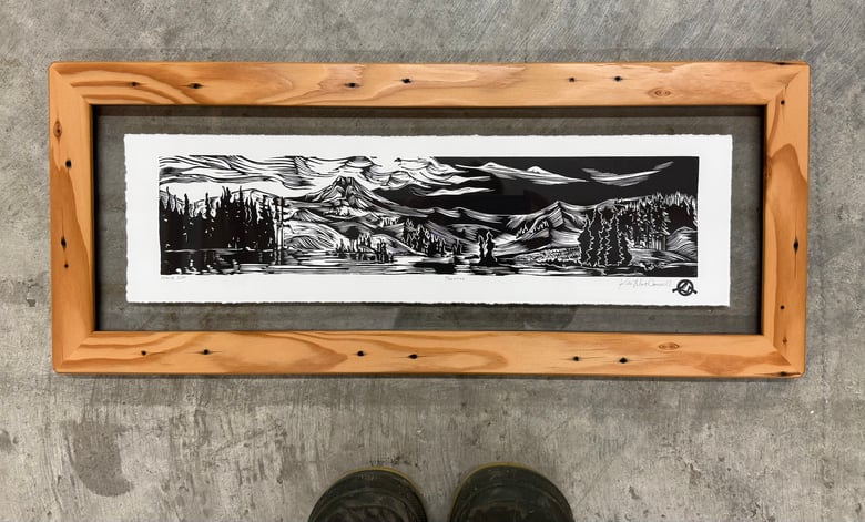 All of the frames are handmade in-house. So much more than a means of preserving your print, these meticulously crafted frames are custom made from start to finish in our modest Portland, Or woodshop. The lumber for these frames is primarily locally sourced salvaged material. Through careful lumber selection, milling, sanding and finishing, we reveal the beauty hidden within the wood. Commonly acknowledged as a piece of art in their own right, our frames truly embody the ethos of the work they preserve. Head on over here to learn more about our custom framing!